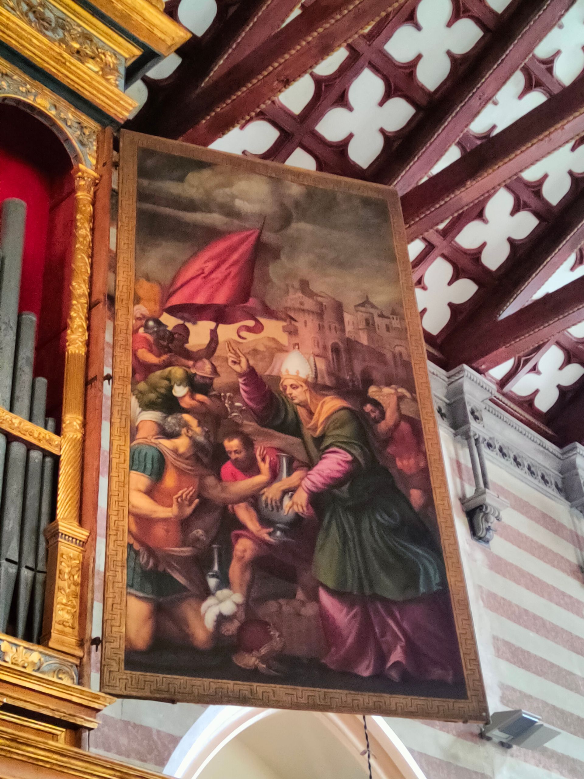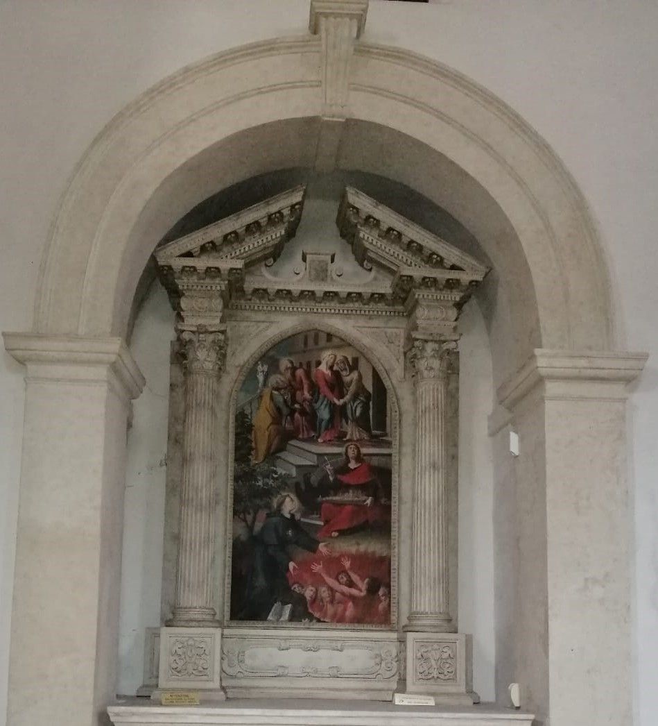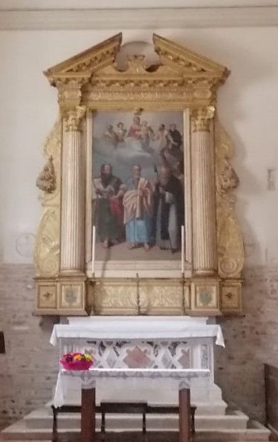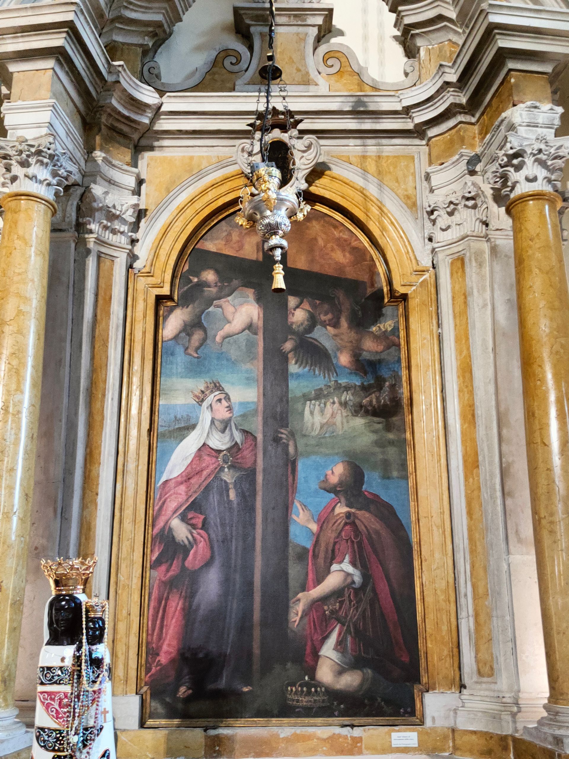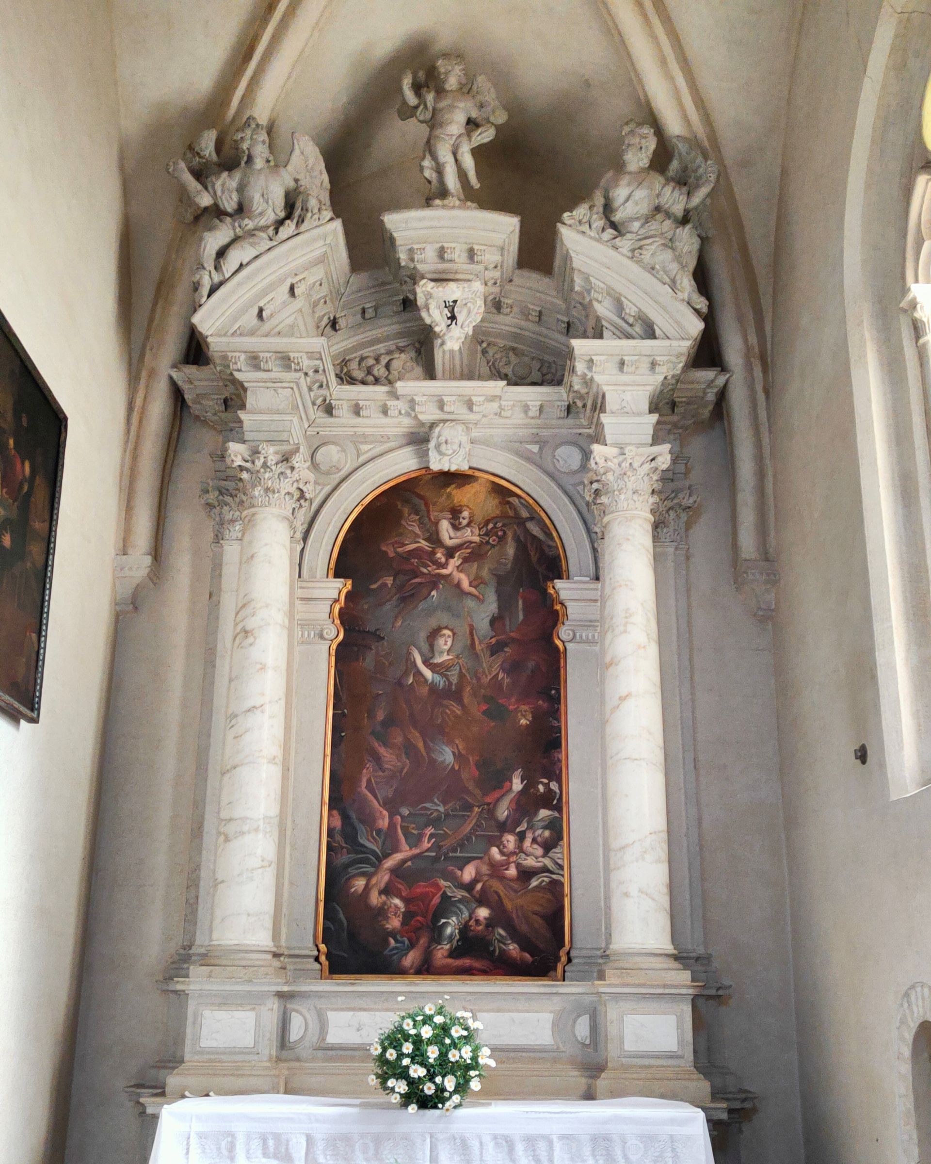 L'altare della S.Croce (a destra) è di Francesco Caribolo (1705) con una pala di Anzolo da Portogruaro (1605) che rappresenta S.Elena e il ritrovamento della Croce.