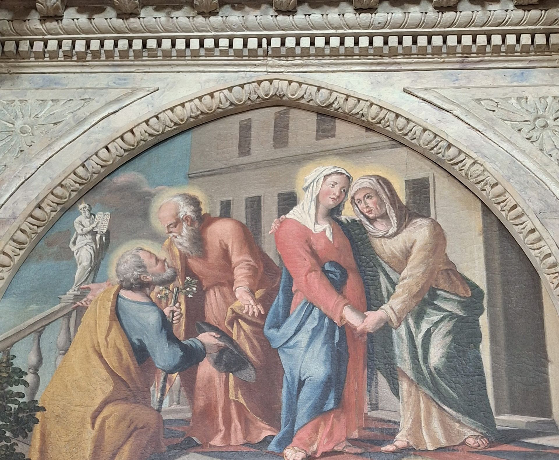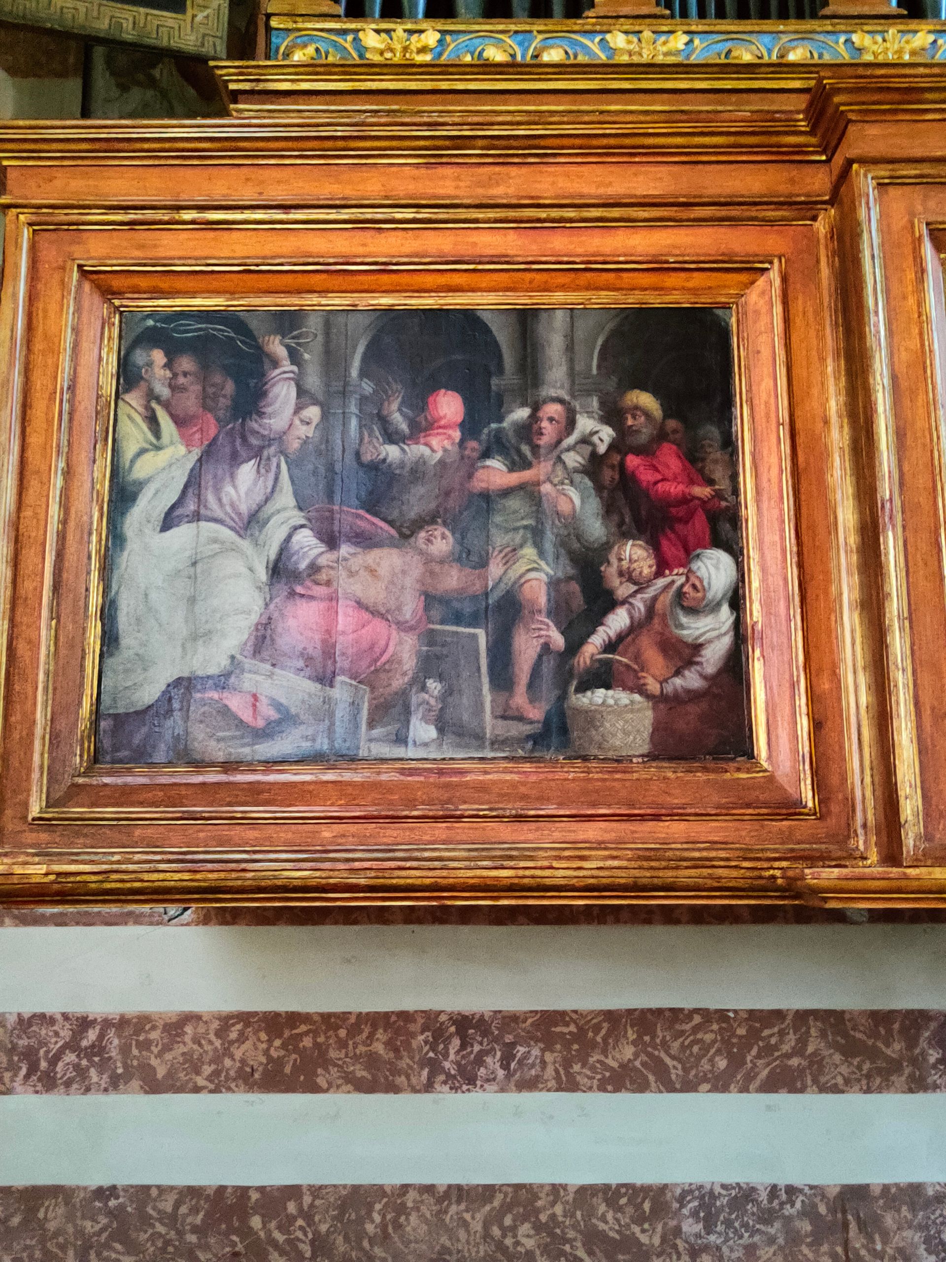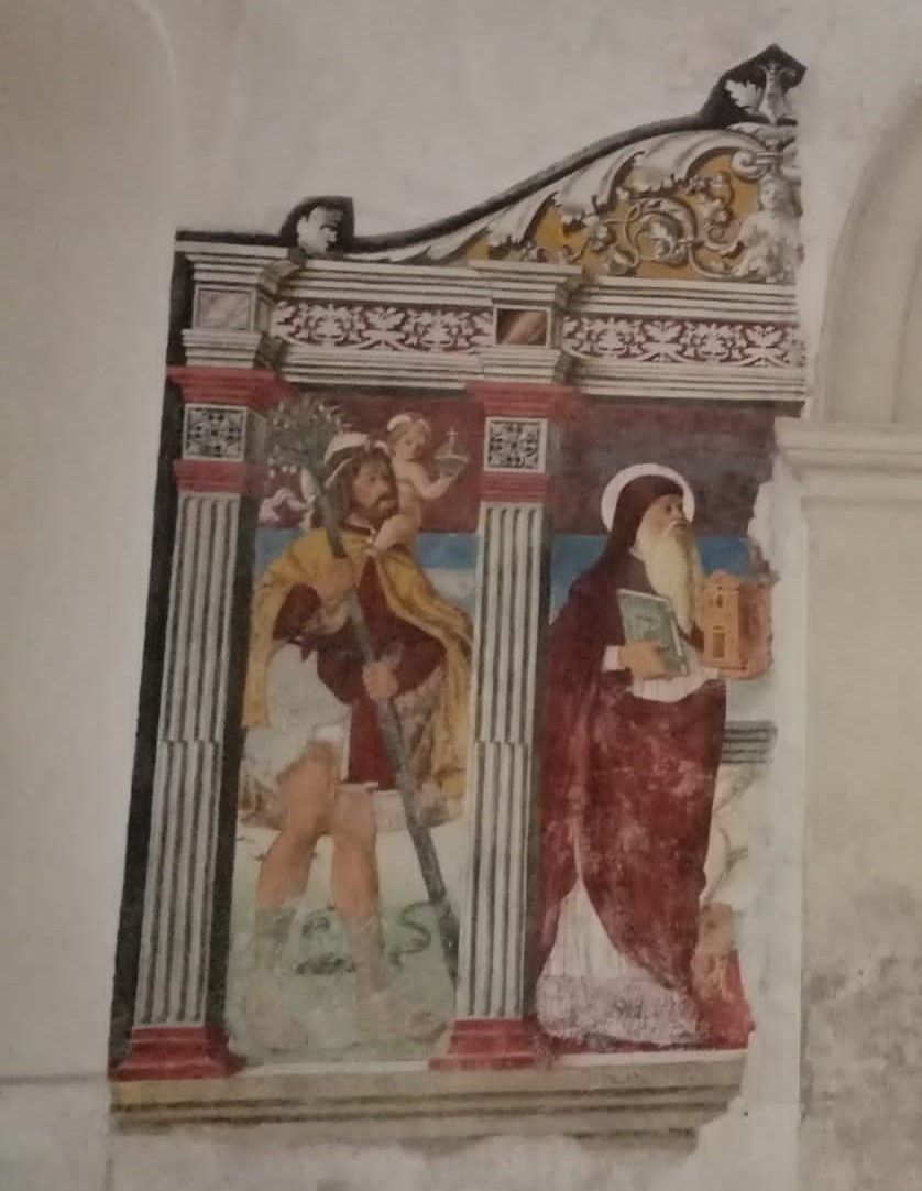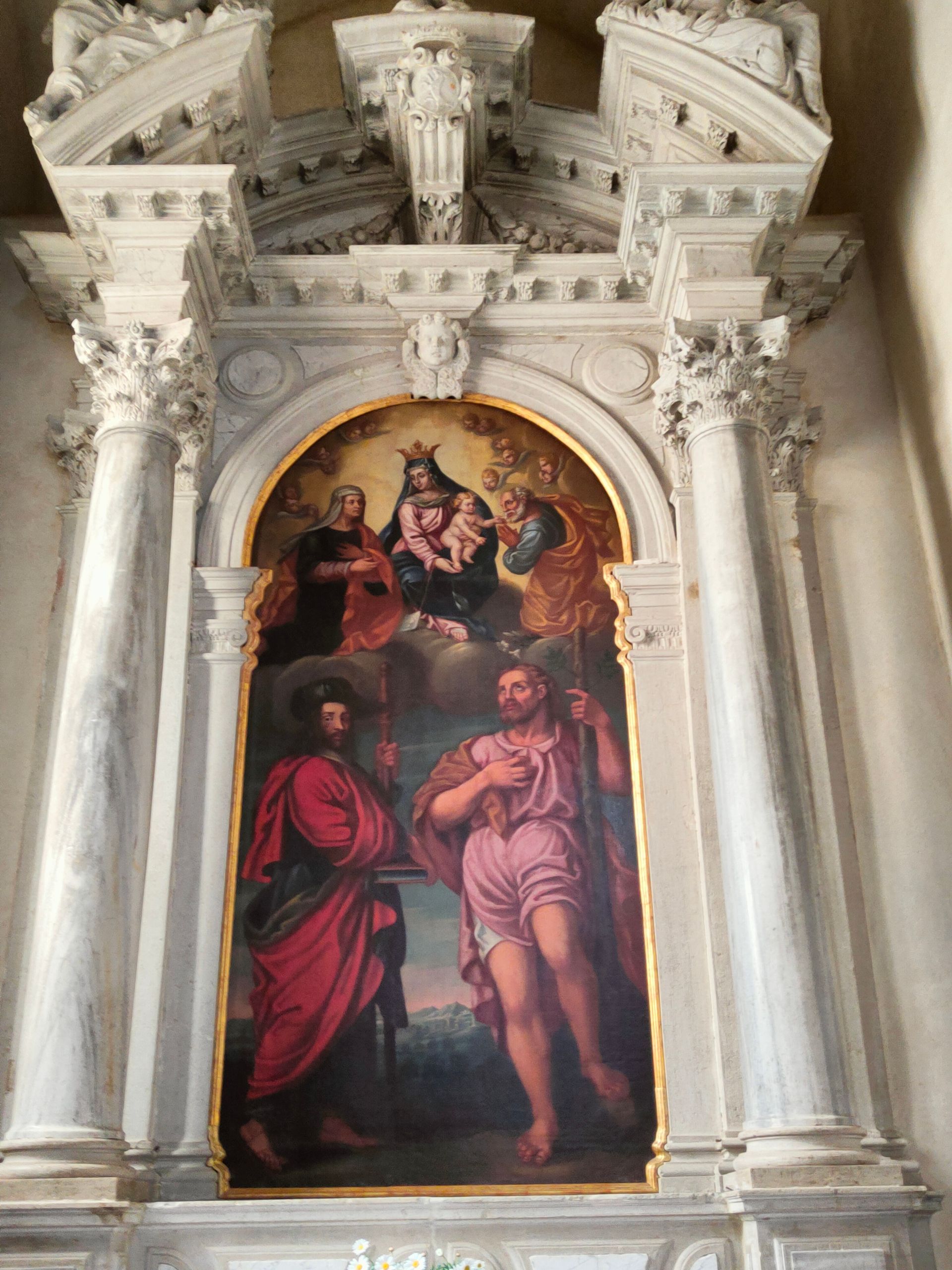 La cappella di sinistra è occupata da un altare barocco dedicato ai santi Giacomo e Cristoforo. Nella pala di Bartolomeo Ferrari (1667), vediamo anche la Vergine col Bambino, Sant'Anna e San Gioacchino.